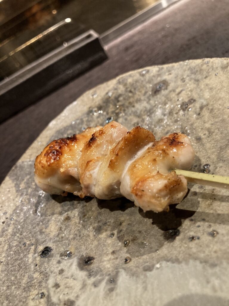 ミシュランガイド掲載「博多水炊き専門 橙」「焼とり鳥次」や「鳥焼肉 名門」と福岡人気店で勤務した大将の焼き鳥屋、焼鳥の火入れも、コースの流れもバランスが良い