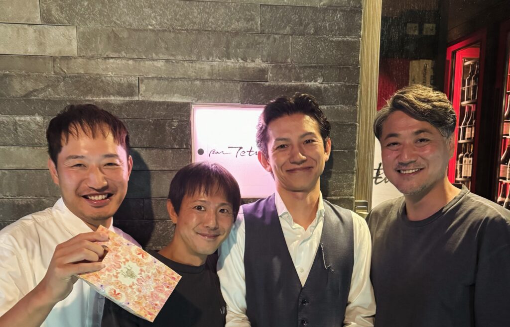 花の香酒造 神田清隆杜氏、白糸酒造 田中克典杜氏、Khmer Rabbit 緒方陽一氏と産土『八農醸』を楽しむ