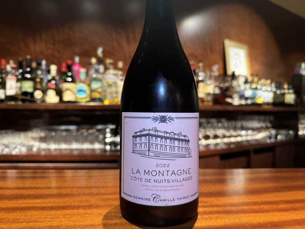 【コート ド ニュイ ヴィラージュ ラ モンターニュカミーユ ティリエCôte de Nuits Villages La Montagne Rouge 2022 Camille Thiriet】コルゴロワンの丘の中腹に位置する樹齢60年の自社畑。40%全房発酵、ステンレスタンクで14日発酵、バスケットプレスで圧搾、12ヶ月樽熟成(新樽20%)