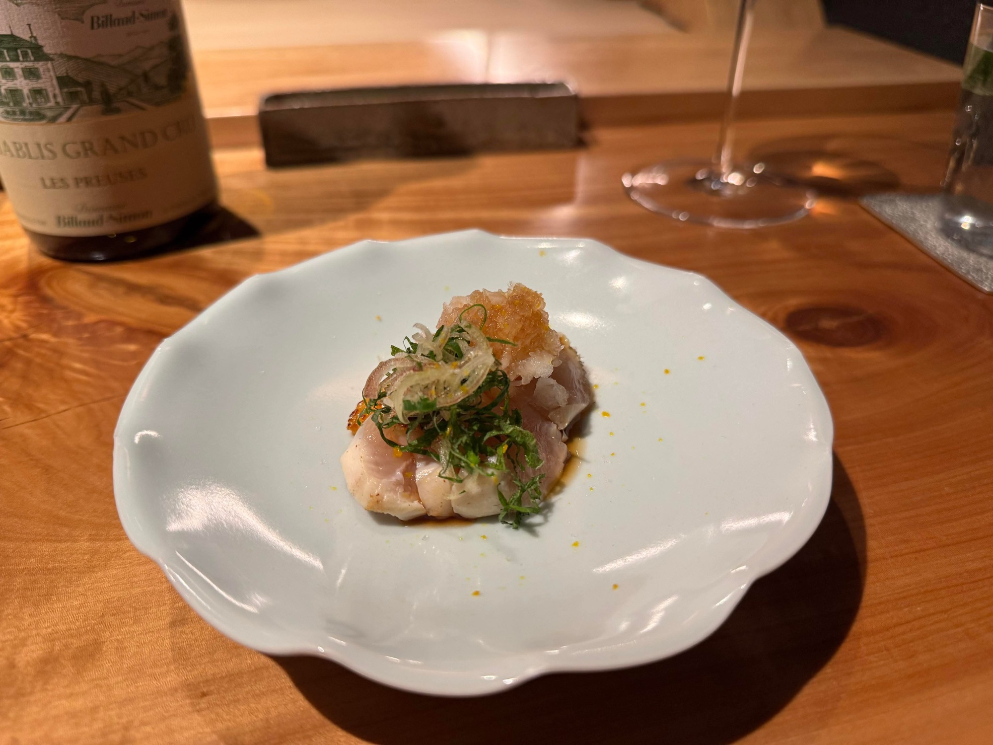 高坂鶏を取り扱うコース料理。この使われている高坂鶏は薬剤、抗生物質などを使わない農法で育てられ、1日の出荷が30羽しかないという貴重な鶏