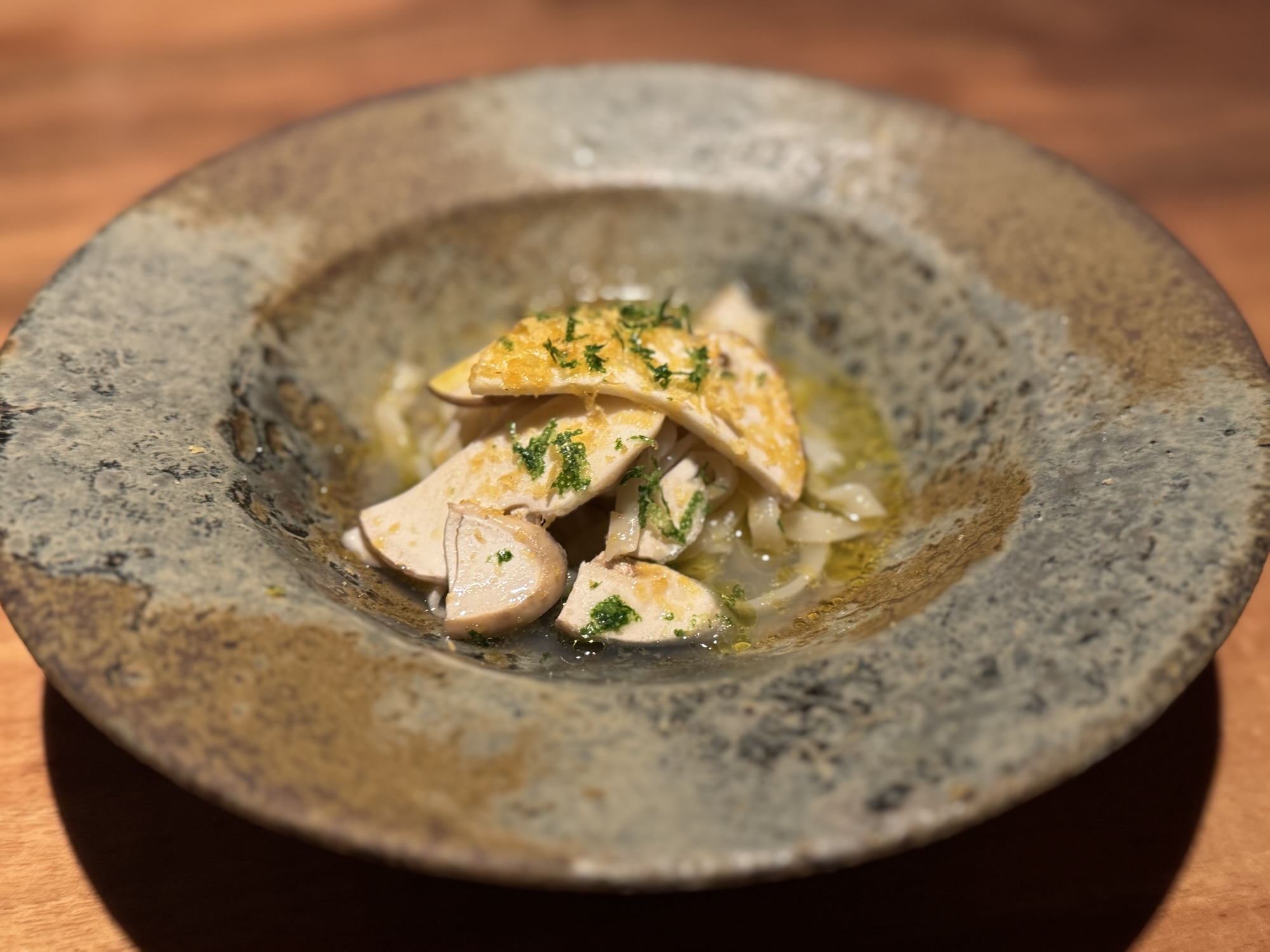 西中洲【nishinakasu泥川武士】イタリアンと和食を合わせた様な独創的な泥川料理 出汁、食材の旨みと魚介を中心としたお料理に、美ある落ち着いた空間でゆっくりと味わえる、ジビエもクセなく美味しい