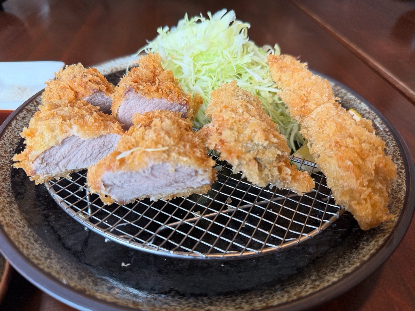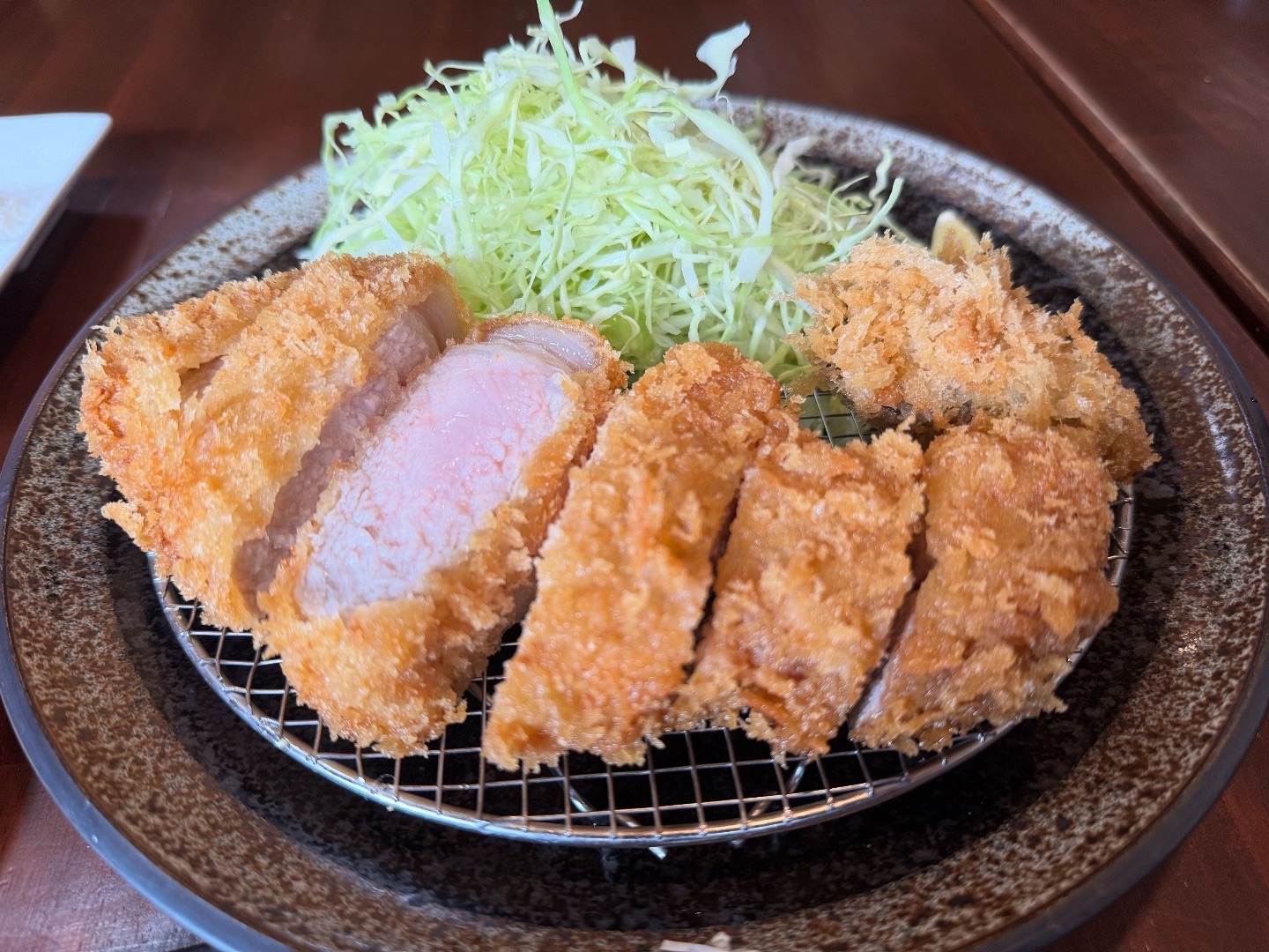 「熊本県水俣市の山奥で飼育されている「モンヴェールポーク」のヒレ肉、水々しく綺麗に美味しいトンカツ、牡蠣フライも美味しい