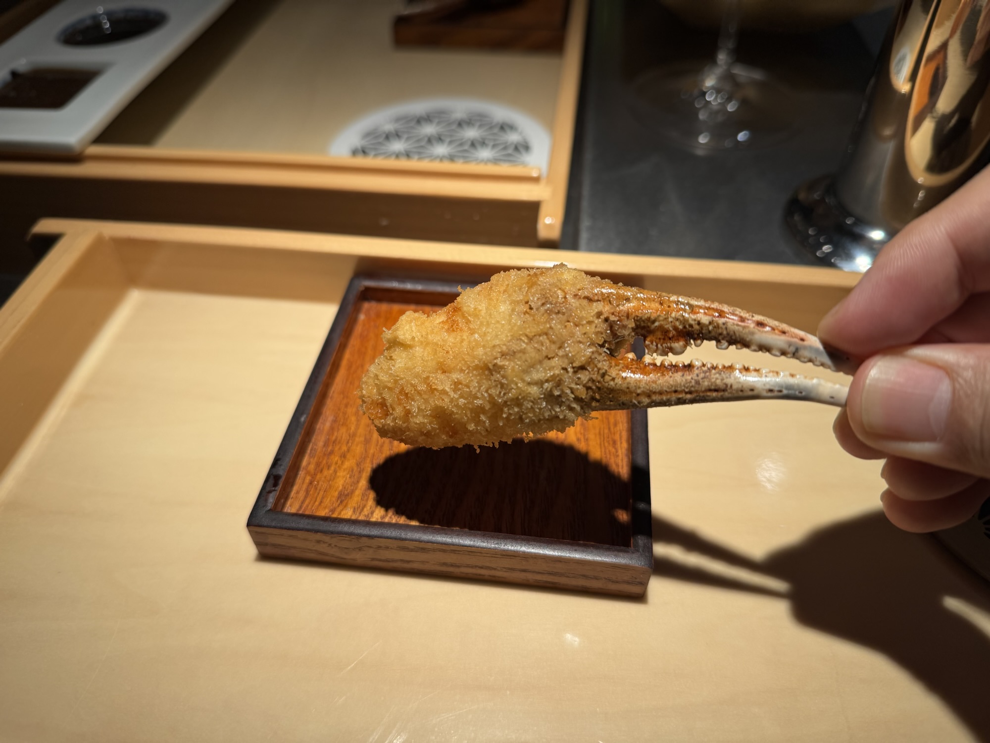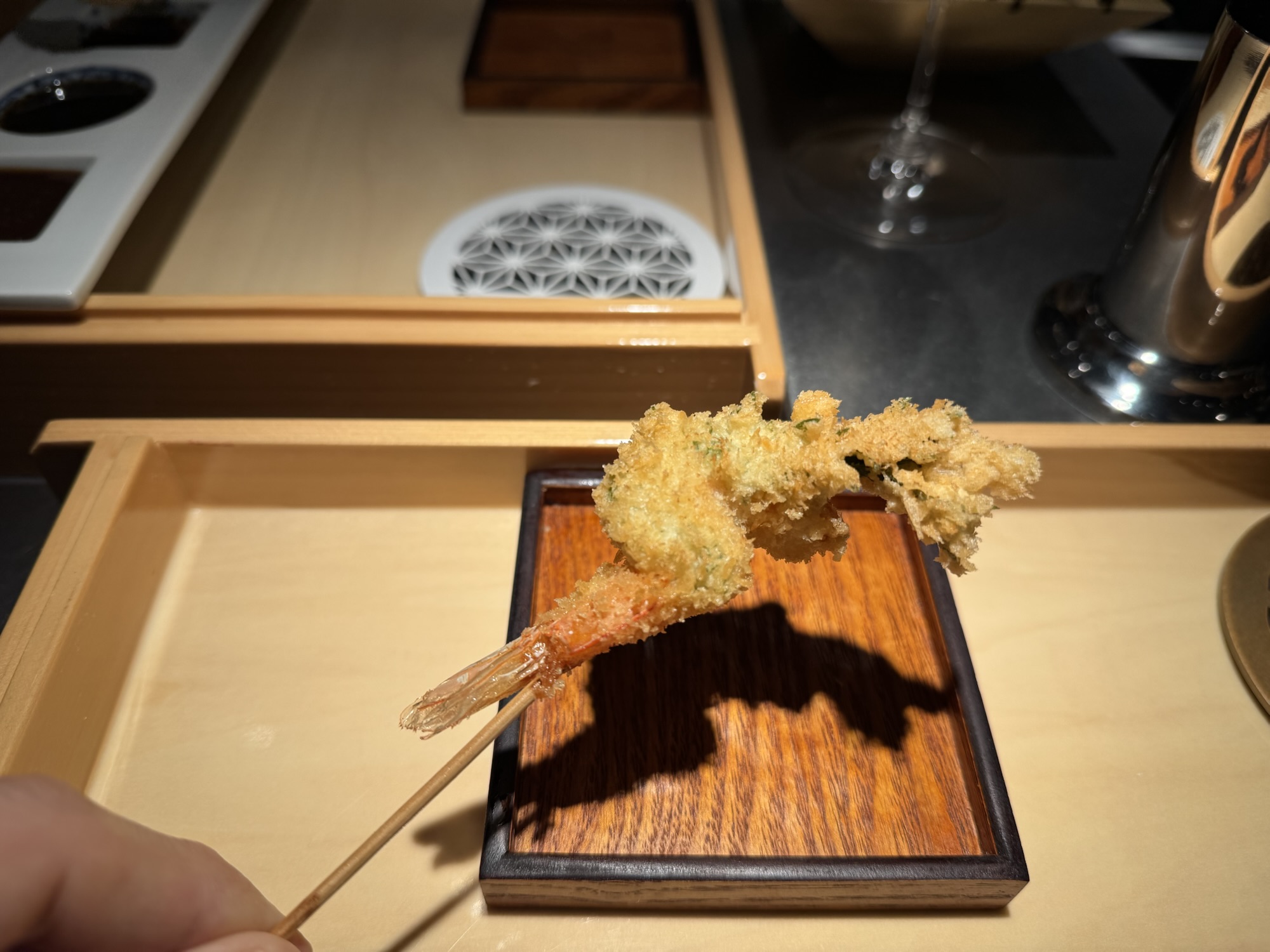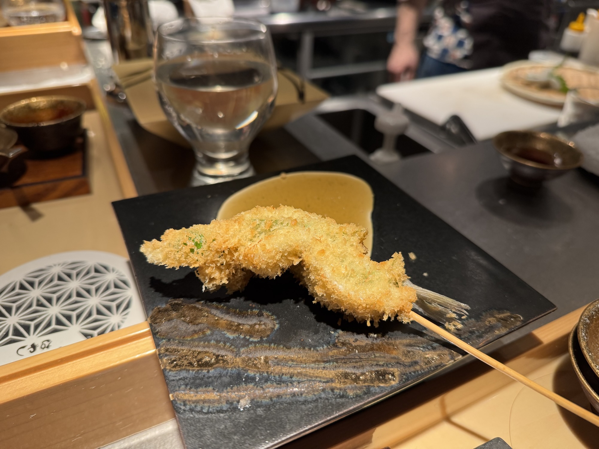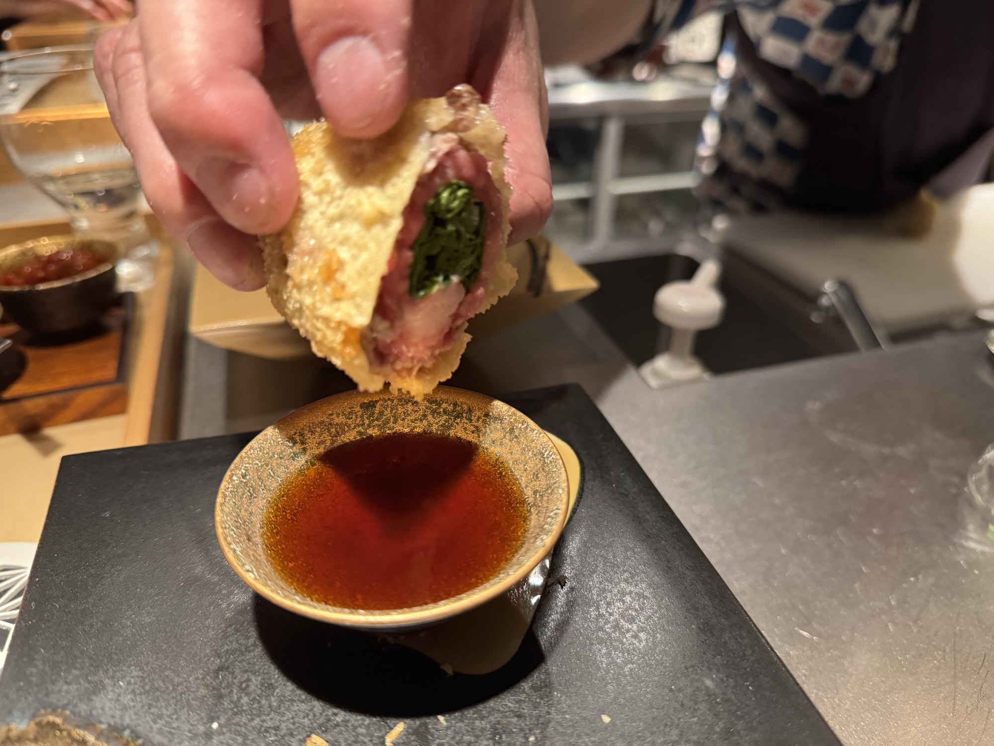 音を聞き、火入れ具合を確認し、余熱で仕上げる。火入れの技術がとても素晴らしい、サクッと軽い衣に、厳選された食材。日本酒を飲む事が必須的なお店